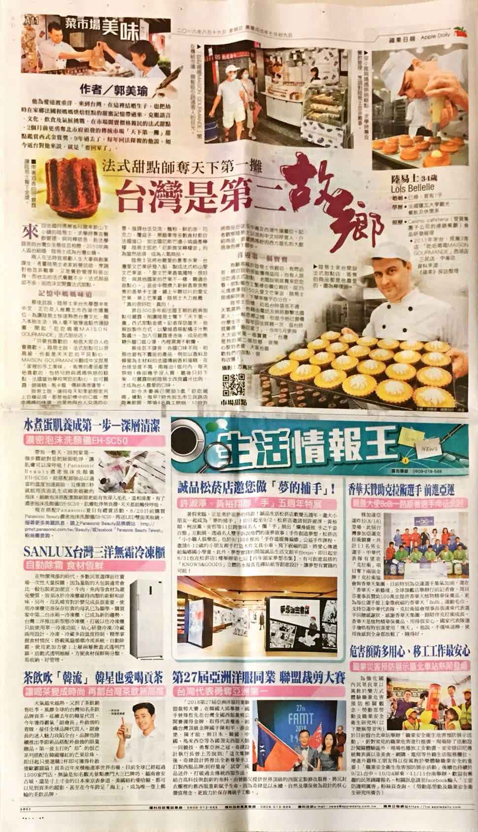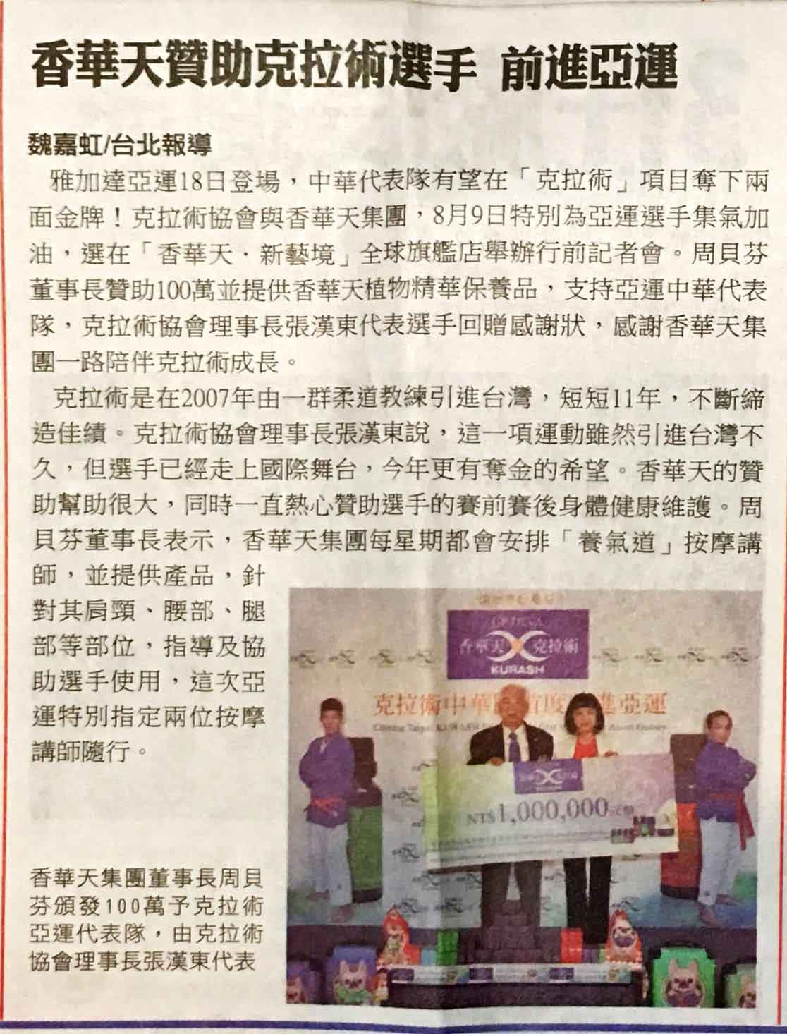 报纸:苹果日报A11(香华天提供新闻稿)。日期:2018/8/18