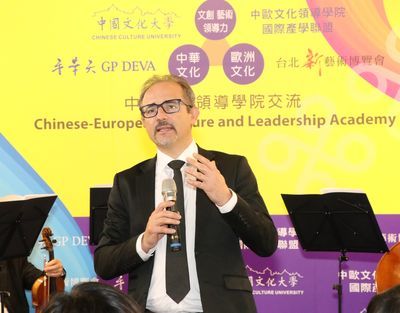 中欧文化领导学院顾问主席Professor Giovanni Schiuma(欧洲文化首都顾问、义大利Matera前副市长)致词提到试图在亚洲、欧洲文化区之间建立沟通桥梁。