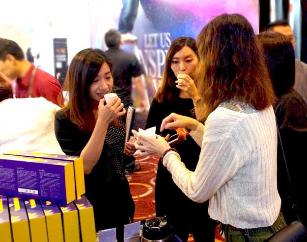 而针对「香格里拉」系列复方精油,香华天集团也带来了香氛心理测验。透过香氛选择,能了解近期自我内心状态,因为测验结果准确,时不时就会听到展位出现「哇~」的声音。当日还有家企业的员工不约而同选到「得心喜悦」复方精油,打趣讨论是不是也要送老板一瓶,心情好就不怕业绩压力。