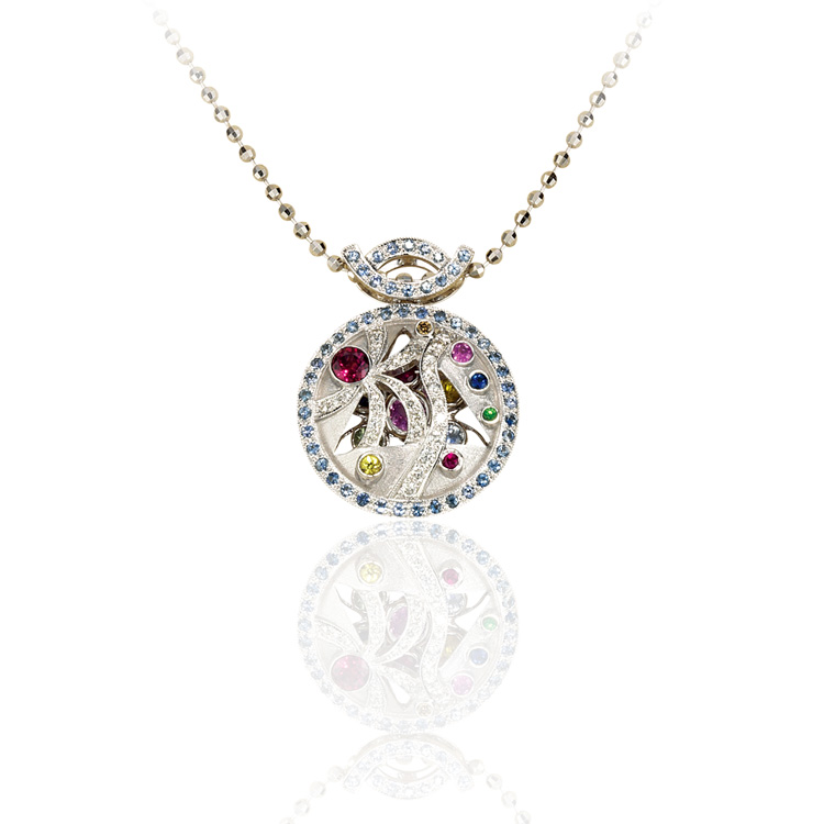 The diamonds symbolizes the Milky Way, with seven colorful corundum representing Lucky Seven, and additional seven corundum on the reverse side to signify a vast 3 dimensional galaxy.