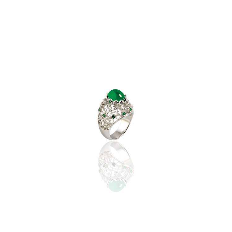 Ring: 18K White Gold Jadeite Diamond Tsavorite