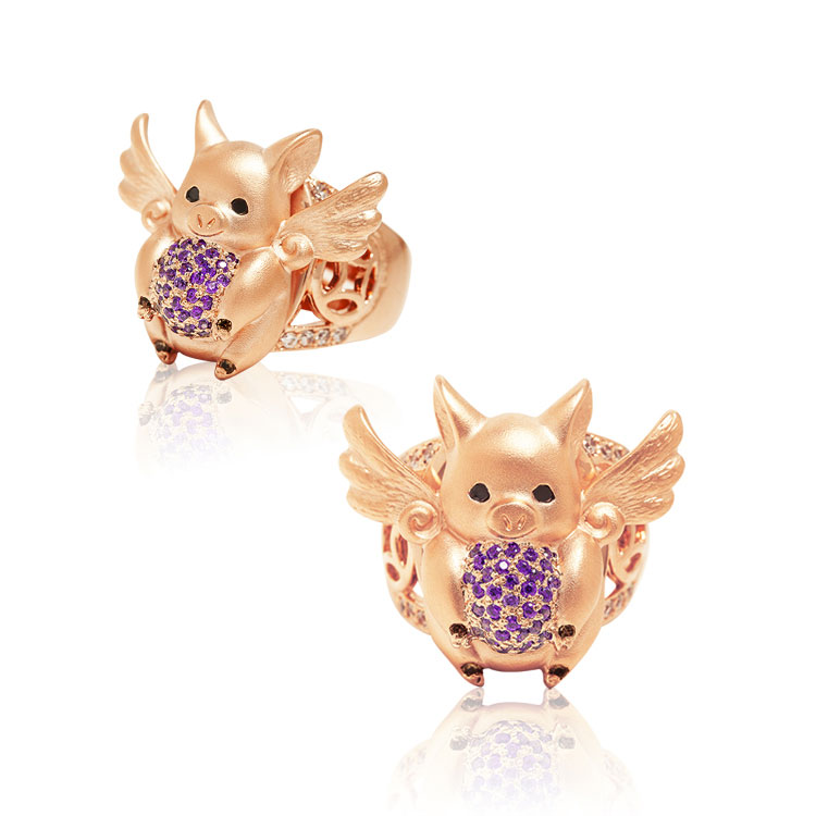 Diamond Glory Series - Chinese Zodiacs Design inspiration from Artist Luna Chen’s artwork “Animal Paradise/ Let’s play under the stars." Sterling Silver Cubic Zirconia / Nano emerald
