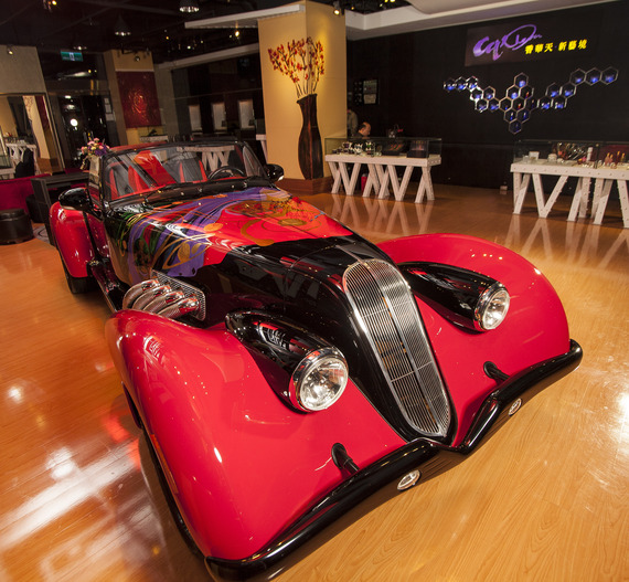 Finished collaborative art and automobile projects: Sir Alfred J. DiMora’s Vicci 6.2 with Master Lee Sun-Don’s painting on its hood. Photograph courtesy of Sir Alfred J. DiMora/DiMora Motorcar.