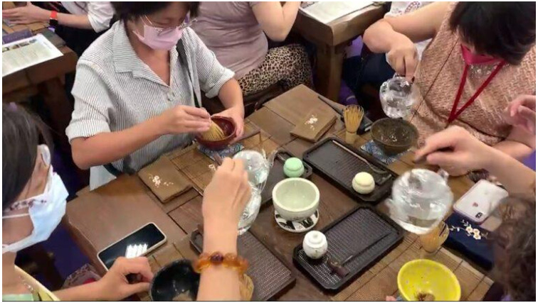 茶席贵賓邊聽「茶娘子」老師的指導,與同桌人「茶」圖片來源:香華天GPDEVA提供