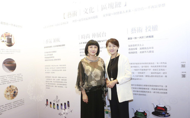 台北市副市長黃珊珊到台北新藝術博覽會參觀,鑄造個人專屬NFT。圖為黃珊珊與大會主席周貝芬在香華天文創藝術區合影。 台北新藝術博覽會/提供