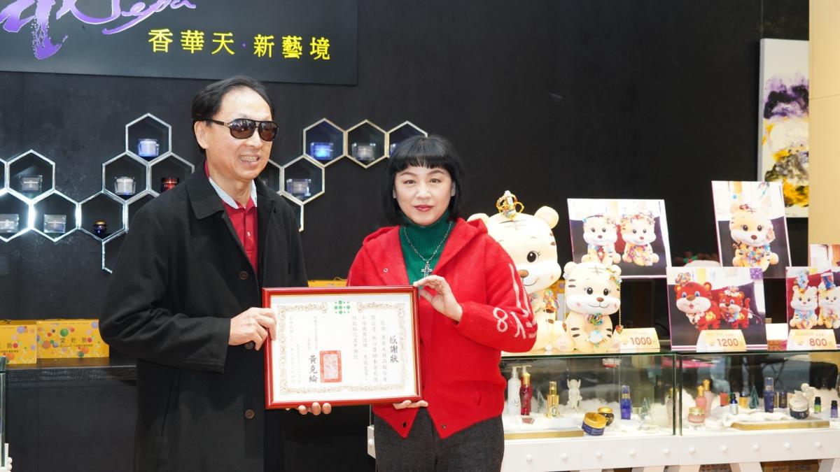 香華天將持續以跨國、無國界的方式支持公益,更期望跨越世代,有年輕力量的參與,匯聚愛心,《讓愛看見》(左:愛盲基金會張捷處長,右:香華天GP DEVA周貝芬董事長)