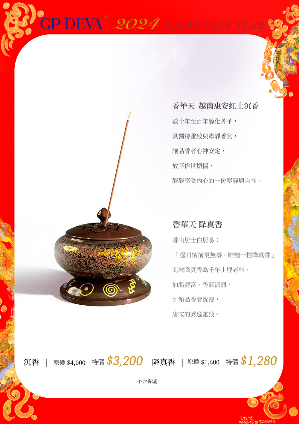 在春節期間送禮或自用最適合不過,一來淨心、二來擋煞,香華天特選的「沉香」、「降真香」以大自然精萃糅捻出的香品,蘊藏著古老豐富的香氣。