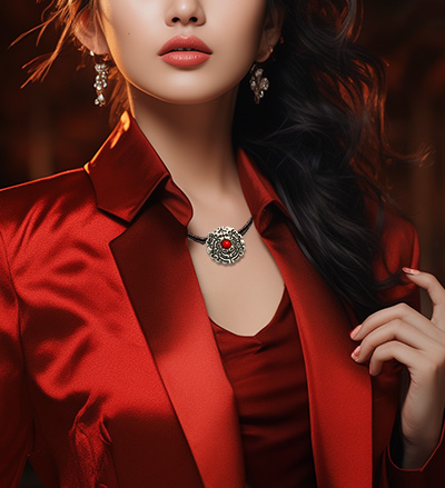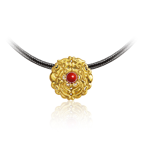 「龍來大發」墜飾,銀色款採用高質感925純銀,浮雕勾勒出螭龍向上升騰之勢。以色澤鮮明溫潤的沙丁珊瑚為主石,襯托出肌膚明亮有朝氣。大膽融入似彈簧般的鍊繩,營造視覺上生動活潑有層次。而金色款墜飾則是採用了銀鍍金,光芒溫潤充滿生氣,展現自信與魅力。