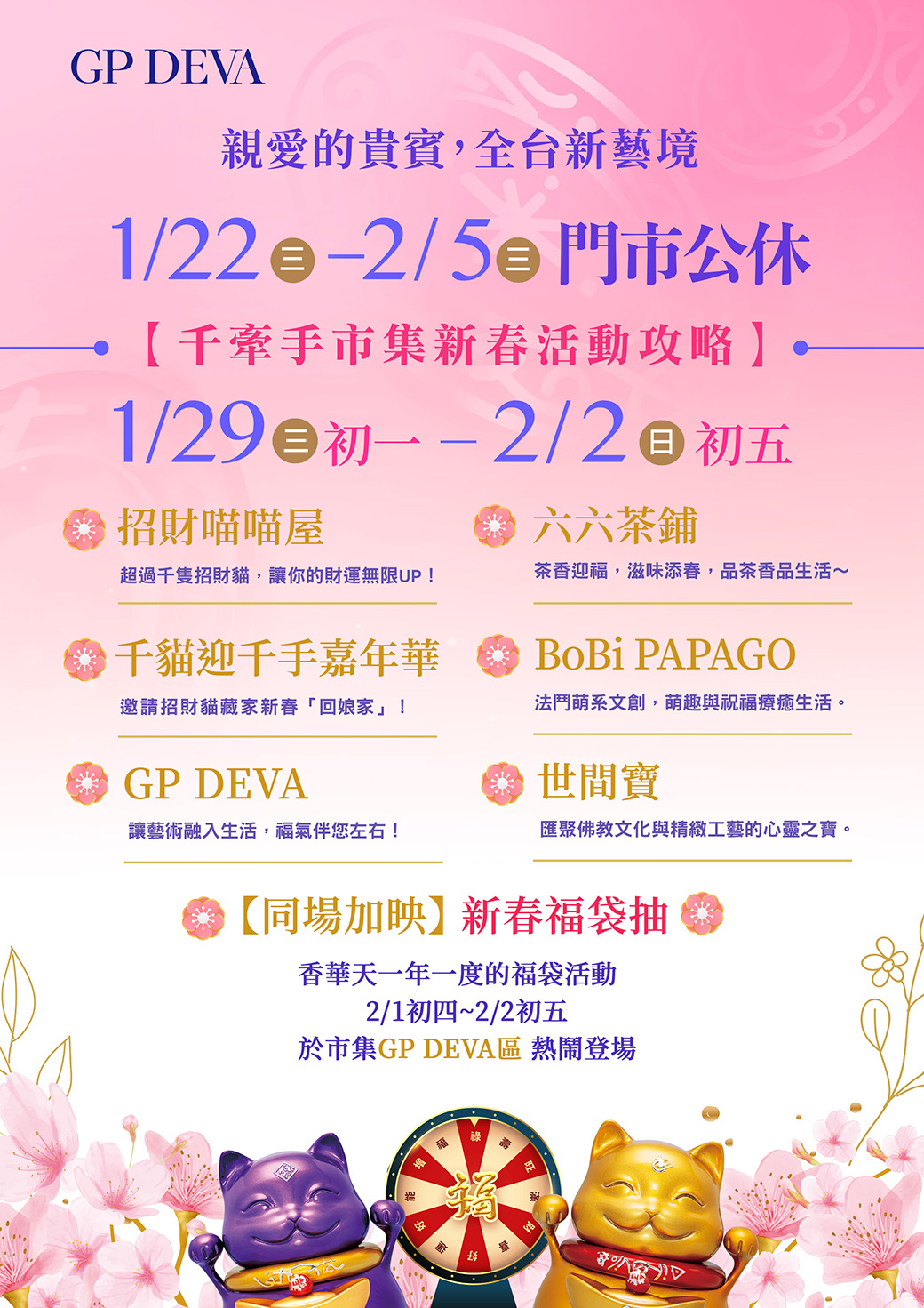 預祝您與家人新年快樂、吉祥如意!我們期待在千牽手市集與您相見,為您帶來滿滿的春日祝福!