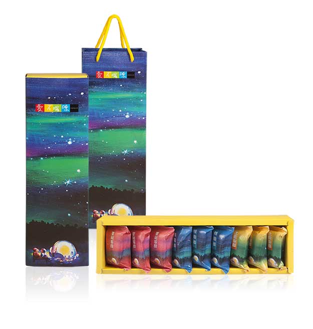 香华天无偿授权旗下艺术家撒贞明画作“人生七彩/谈心”,专为唐氏症基金会设计礼盒,让大家带着唐宝宝的手作礼盒在星空下,望月谈心。