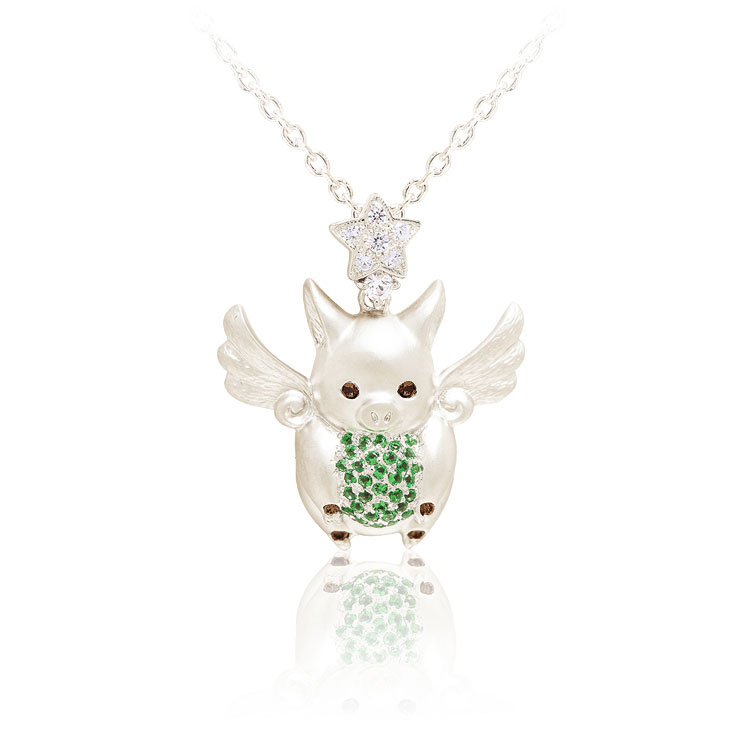 马戏团舞台上带给观众无限快乐,星空是玩耍表演的球,星芒成了璀璨美钻,而欢笑声是小猪翱翔的翅膀。2019钻到系列-生肖珠宝灵感来自艺术家陈谊欣的画作「动物乐园/我们一起星星夜游 」 材质:925纯银 玫瑰金 / 铑 方晶锆石(紫、粉红) / 奈米绿宝石(绿) 炼子:925纯银