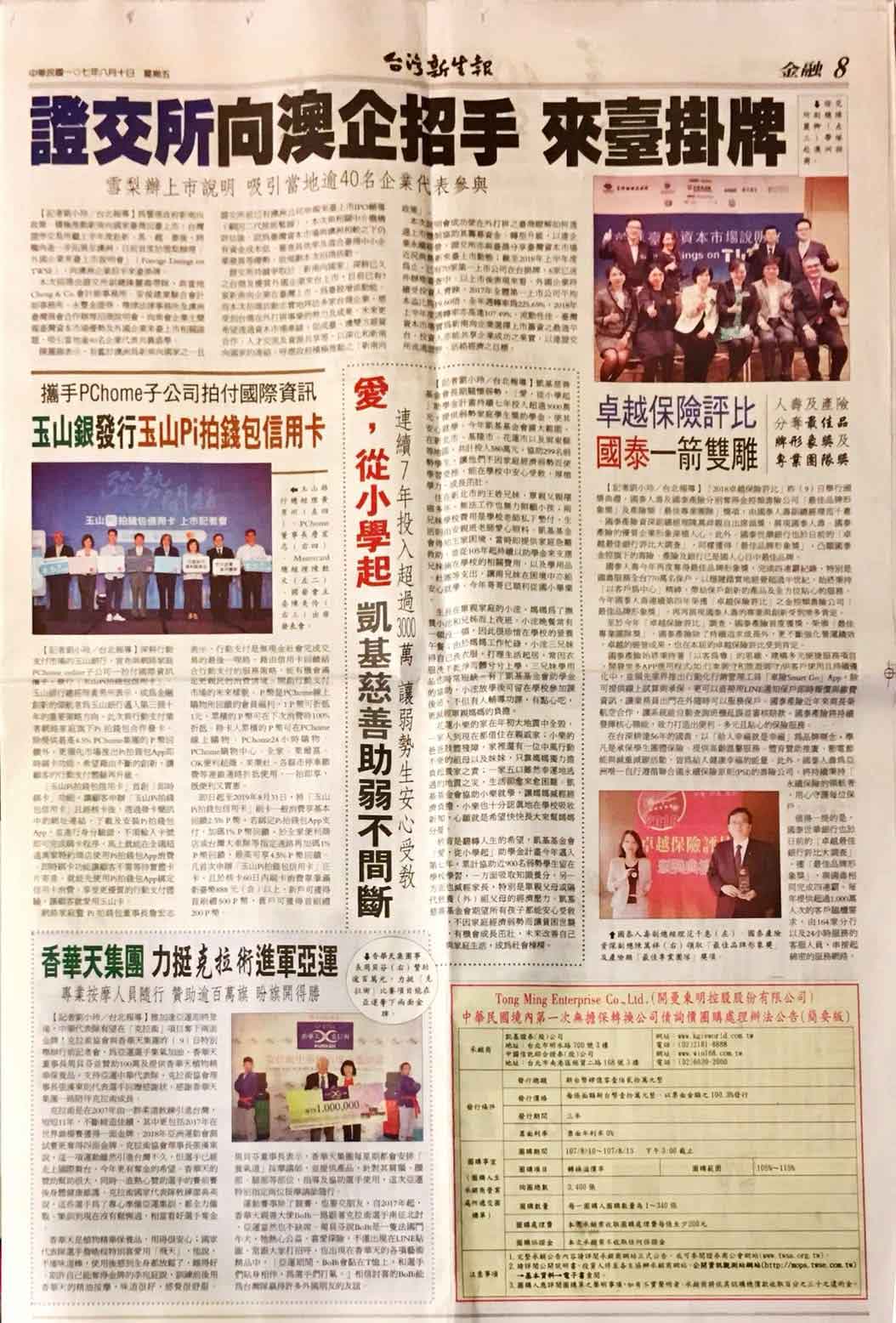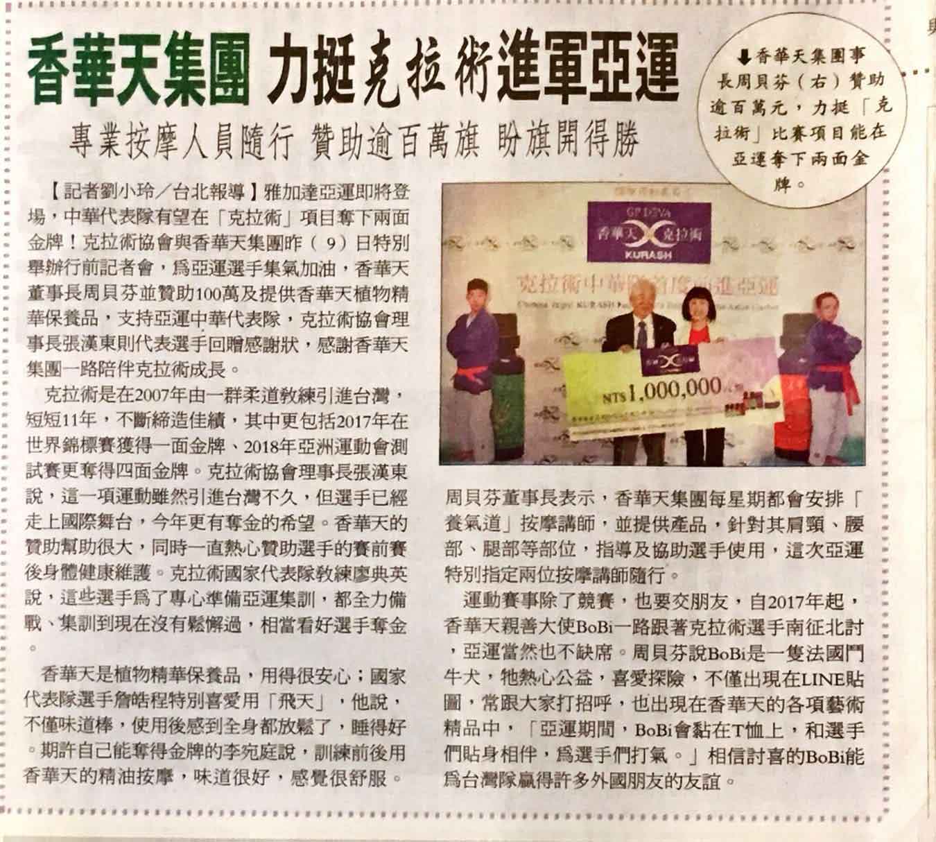报纸:苹果日报A11(香华天提供新闻稿)。日期:2018/8/18