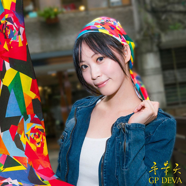 「艺术运动毛巾」,当成头巾让整体造型非常亮眼有活力,作品「气势磅礡」是由玛馨玲+陈谊欣联手创作!