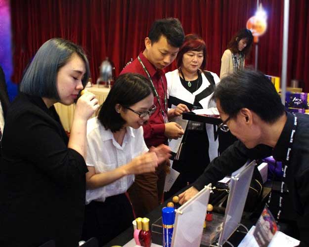 而针对「香格里拉」系列复方精油,香华天集团也带来了香氛心理测验。透过香氛选择,能了解近期自我内心状态,因为测验结果准确,时不时就会听到展位出现「哇~」的声音。当日还有家企业的员工不约而同选到「得心喜悦」复方精油,打趣讨论是不是也要送老板一瓶,心情好就不怕业绩压力。