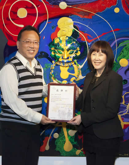 CEO Qiu Ming Kuo of "Elim Youth Academy" presented a Certificate of Appreciation; Vice President Emerald Lin received the certificate on behalf of GP DEVA.