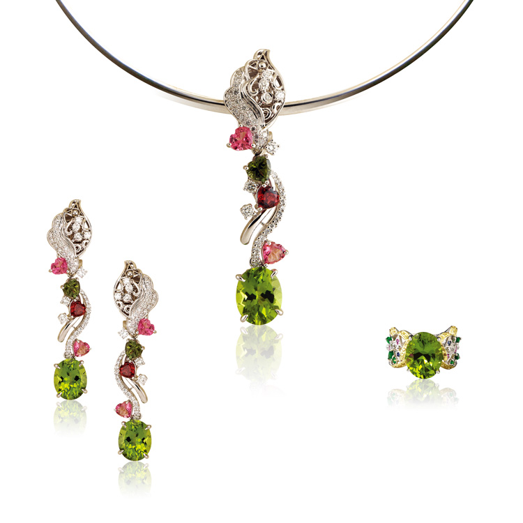 18K Gold 18K White Gold Peridot Tourmaline Amethyst Diamond Tsavorite Yellow Diamond Corundum