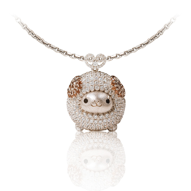 "Sheep - create wealth with pride and elation" - it is plump-shaped and decorated with luxurious tiny diamonds. It comes in three colors; yellow, purple and bright. It is cute, pleasant and fashionable. A symbol of perfection for everything and coming wealth.