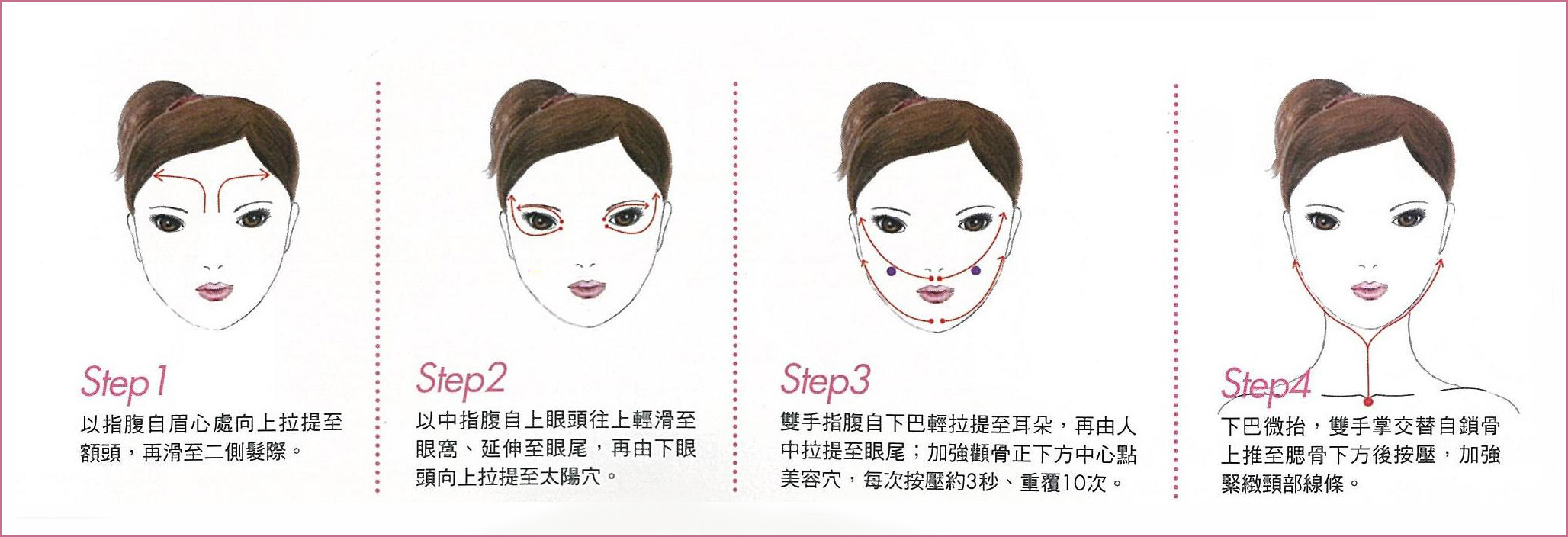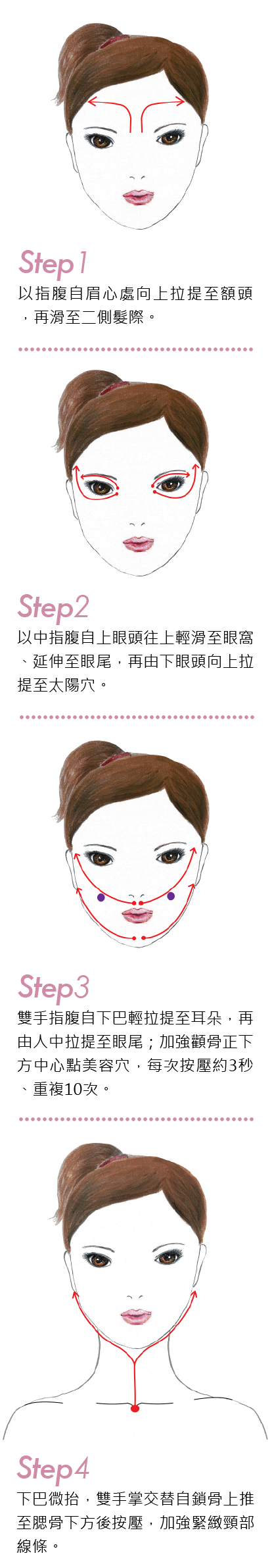 Step1:均勻塗抹後,由上腹部往下按摩至肚臍下方位置,共8回。