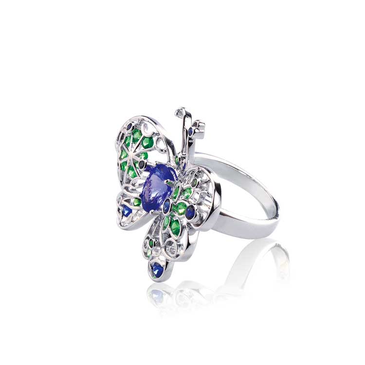 18K白金 丹泉石 藍寶 沙弗石