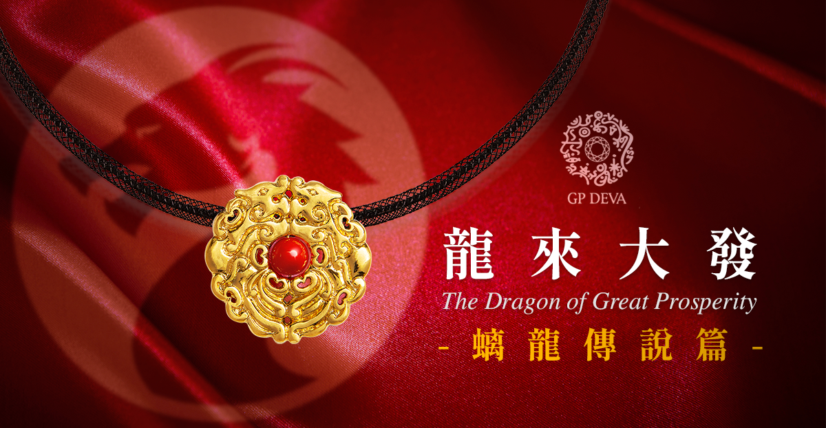 象徵吉祥與力量的螭龍,富有神秘色彩,在神話中屬於龍的九子之一。隨著朝代更替,螭龍衍生出不同名稱與造型。香華天珠寶「龍來大發」設計靈感,源自戰國時代的螭龍紋,以對稱雙螭龍紋的形式雕刻,雙目炯炯有神,龍身隱於祥雲之中若隱若現,令人讚嘆不已。
