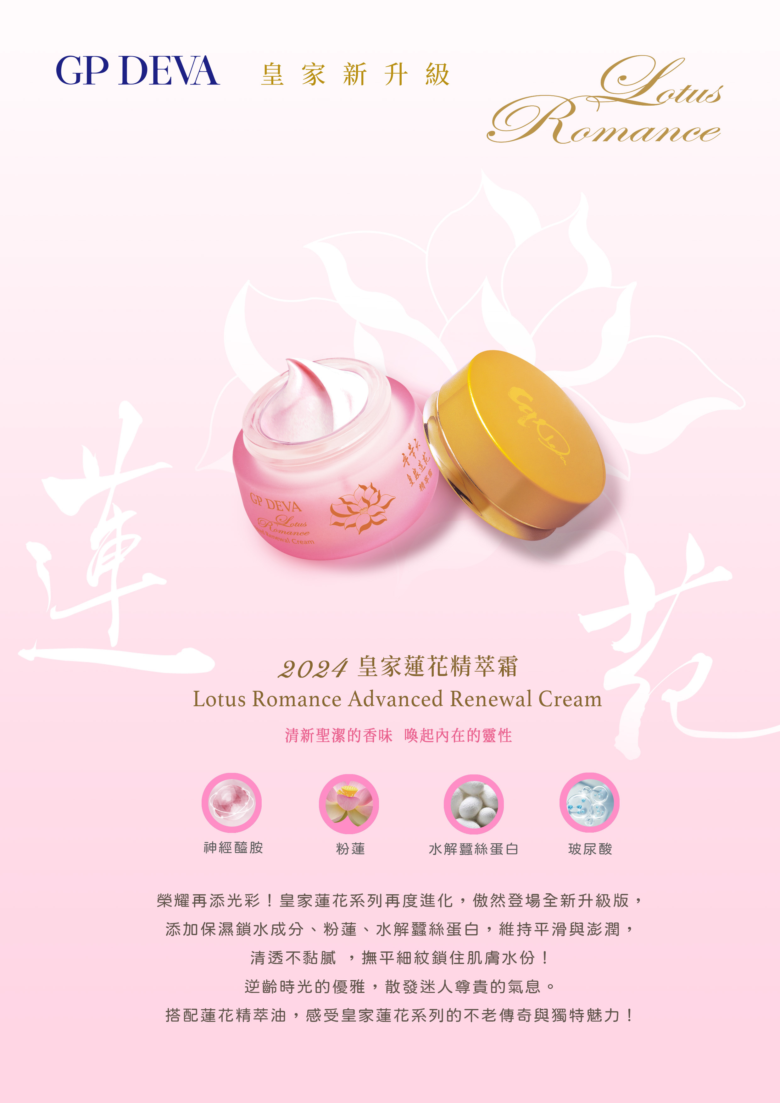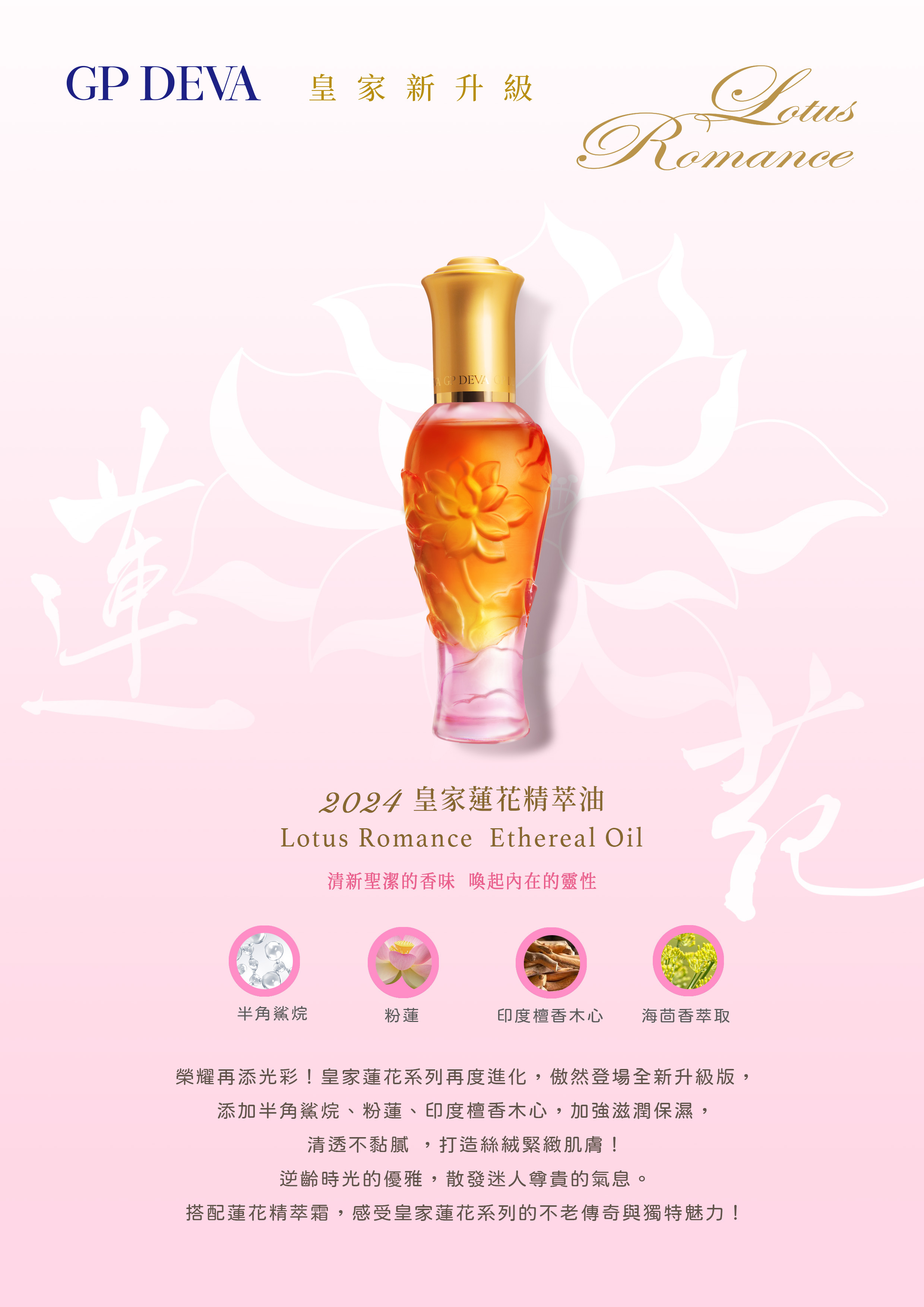 榮耀再添光彩!皇家蓮花系列再度進化,傲然登場全新升級版,逆齡時光的優雅,散發迷人尊貴的氣息。